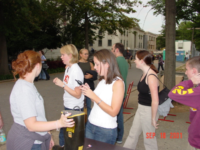 9.20.01: The American Red Cross was on campus Thursday along with Pike and AXO helping to raise awareness and get volunteers for the relief effort. Over 100 people signed up for the new Red Cross club on AU's campus while many also offered to give blood in the upcoming blood drive.